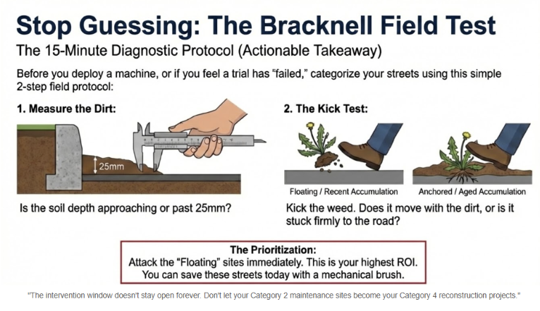 If you trial a mechanical brush on a Stage 3 street, it will look like a failure because you missed the chronological window to intercept the root before it became part of the road.